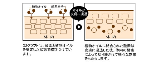 ドイツ生まれの酸素が浸透する世界でただひとつのオイル。植物オイルの分子を安定させた状態で酸素の原子を結合させた高濃度酸素入りオイルです。塗るだけで酸素が素早く浸透し自然治癒力が増大し健康でキレイになるオイルです。